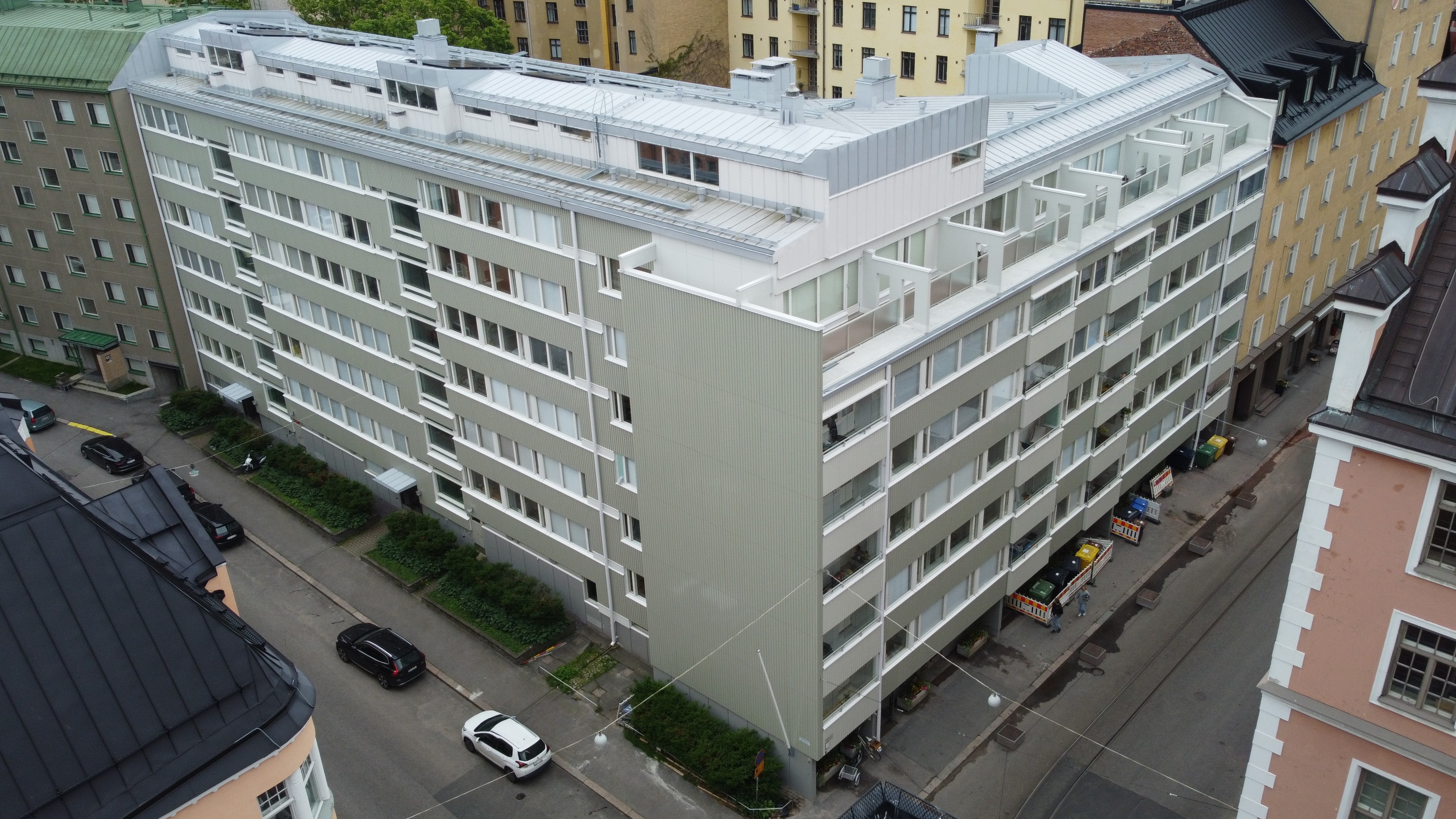 Perämiehenkadun ja Pursimiehen risteyksessä sijaitseva kulmakiinteistö As Oy Perämiehenkatu 5:ssä saneerattiin rakennuksen katu- ja sisäpihan julkisivut, Perämiehenkadun puolella sijaitsevat kattoterassit, raskaasti saneerattiin huoneistoparvekkeet ja sisäpihan pintarakenteita uusittiin.